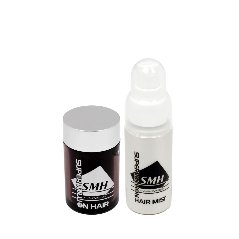 Super Million Hairs nano sized fibres bond electro-statically to your remaining hair and can be sealed into place by using the specially formulated Hard Mist.